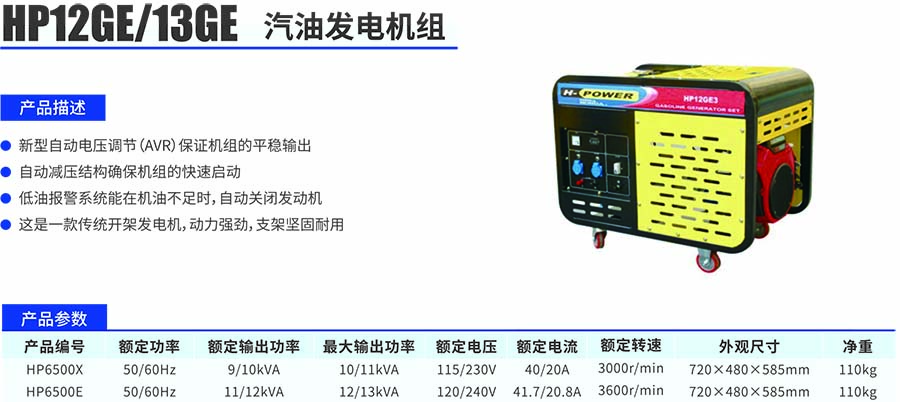 HP12GE/13GE汽油發(fā)電機(jī)組